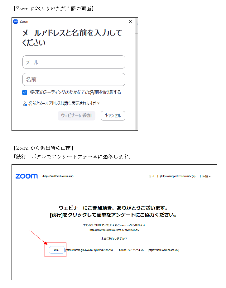 Zoomにお入りいただく際にはメールアドレスとお名前を入力してください。