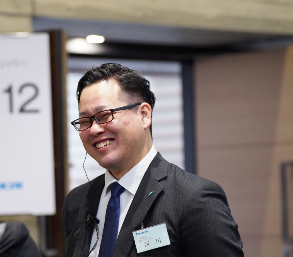 西川 徹(人事本部 採用グループ) 【略歴、プロフィール】 就活中は「世界における日本のプレゼンス向上」を軸に商社・メーカーを中心に受け、空調領域でグローバルトップかつ成長企業のダイキンへ2015年に入社。入社後はエンジニアとして北米NO.1獲得のための空調機器の先行開発を担当、社長賞2度受賞。2018年より人事に異動。新卒採用活動・新入社員配属統括や人事制度改革にも携わる。現在は社内DX人材育成機能である『ダイキン情報技術大学』の運営も担う。 |