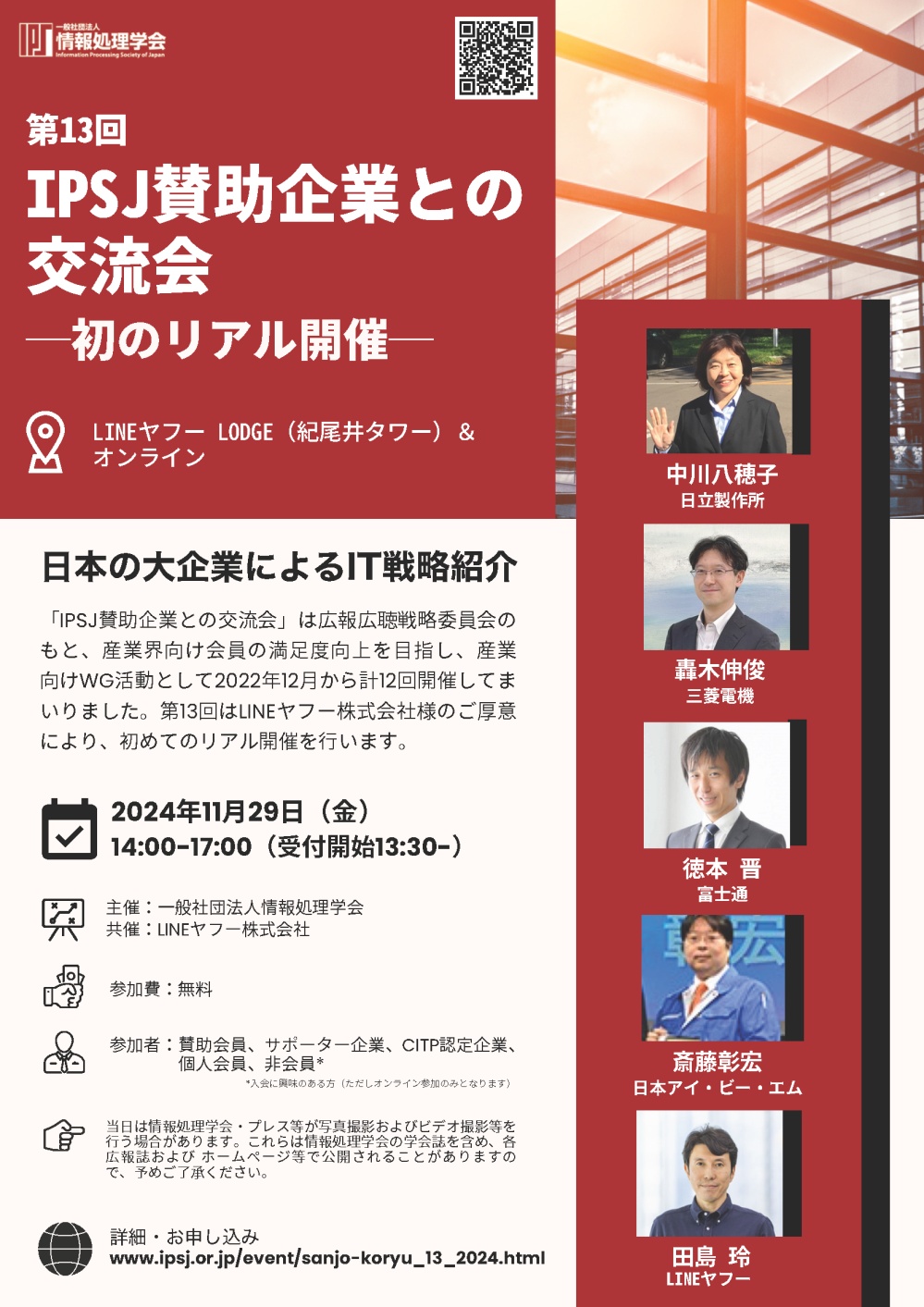 ※同じ企業の方や講演者に同行される方でも参加者お一人ずつお申込みをお願いいたします。