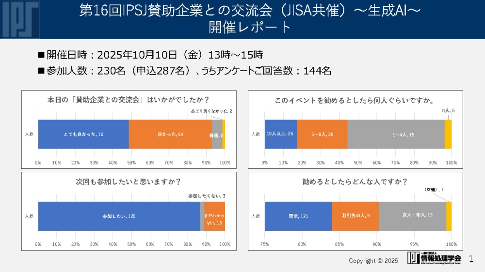 産業界の皆様と会員との橋渡しができるイベントを目指しています。