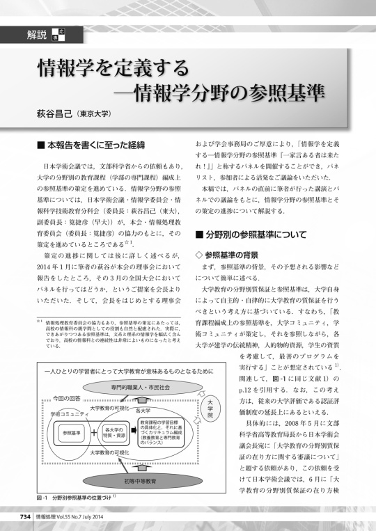 情報処理2014年07月号解説「情報学を定義する—情報学分野の参照基準─」